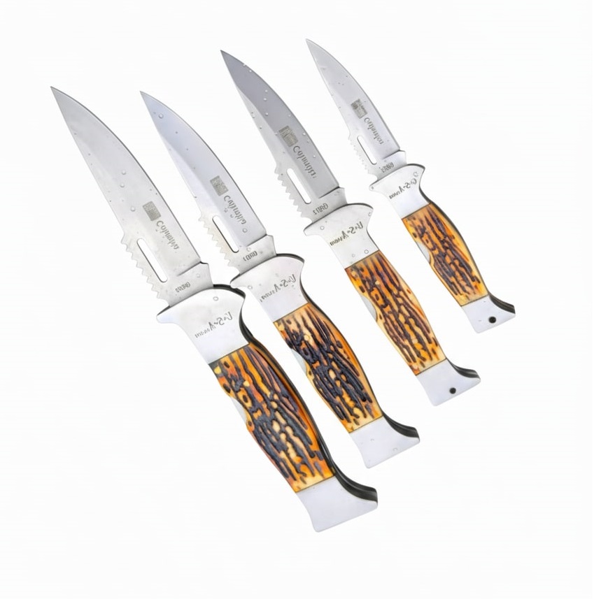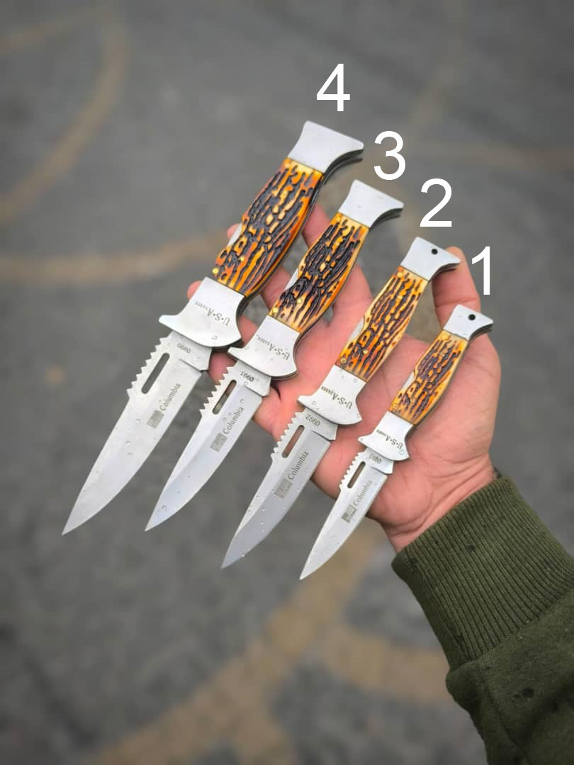 چاقو تاشو جیبی کلمبیا مدل تمساح در ۴ سایز مختلف، با تیغه مقاوم و طراحی ارگونومیک، مناسب حمل آسان و استفاده روزمره در فضای باز.